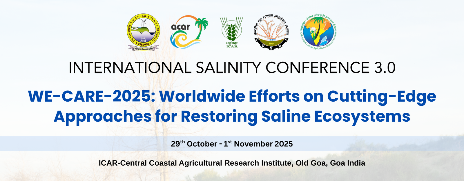 The Indian Society of Soil Salinity and Water Quality (ISSSWQ), founded on 6th August 2008 at Karnal under the Societies Registration Act XXI, 1860 (Registration No. ROS-088) for the advancement of research and development in soil salinity and water quality, aims at providing a forum for scientists, engineers, research workers, students and different stakeholders on the emerging scientific themes for exchange of ideas and knowledge.